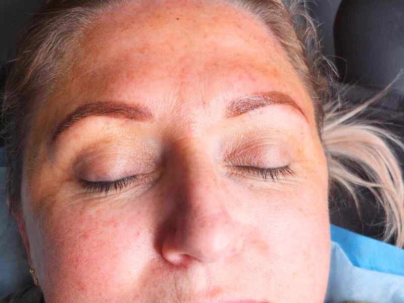 It’s also important to note that the result will initially look approximately 50% darker than the desired effect, and it will take 10 to 14 days for it to lighten. The true colors will be visible only 1 month after the procedure.